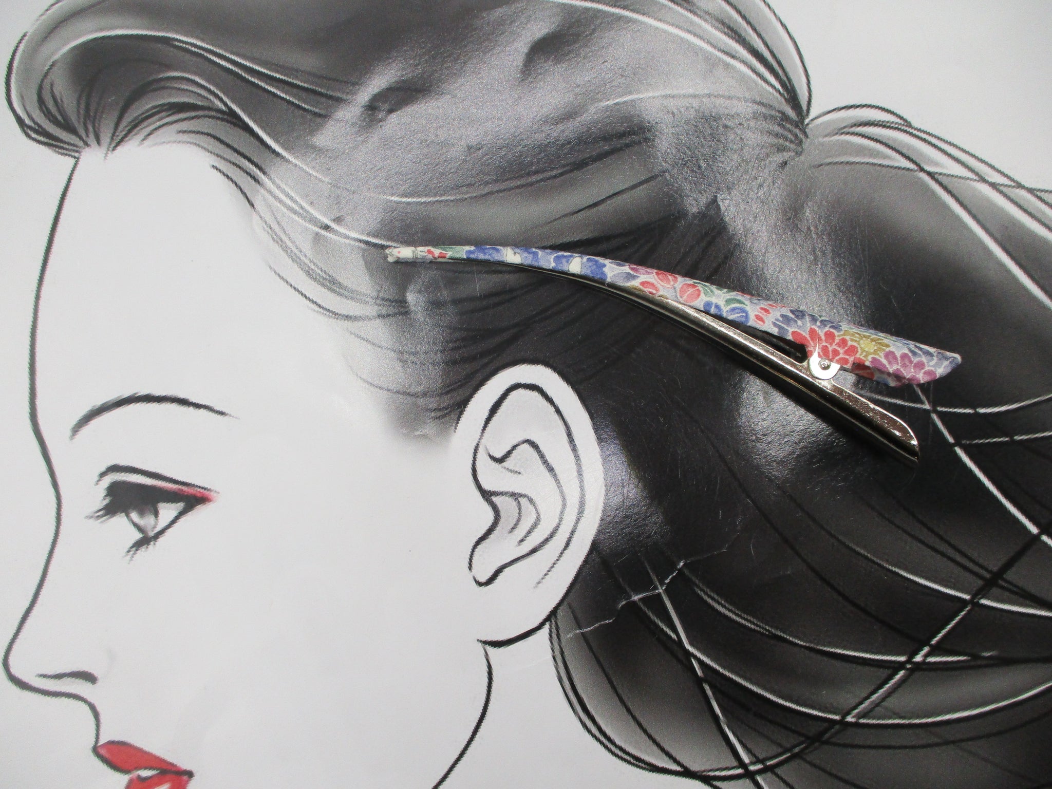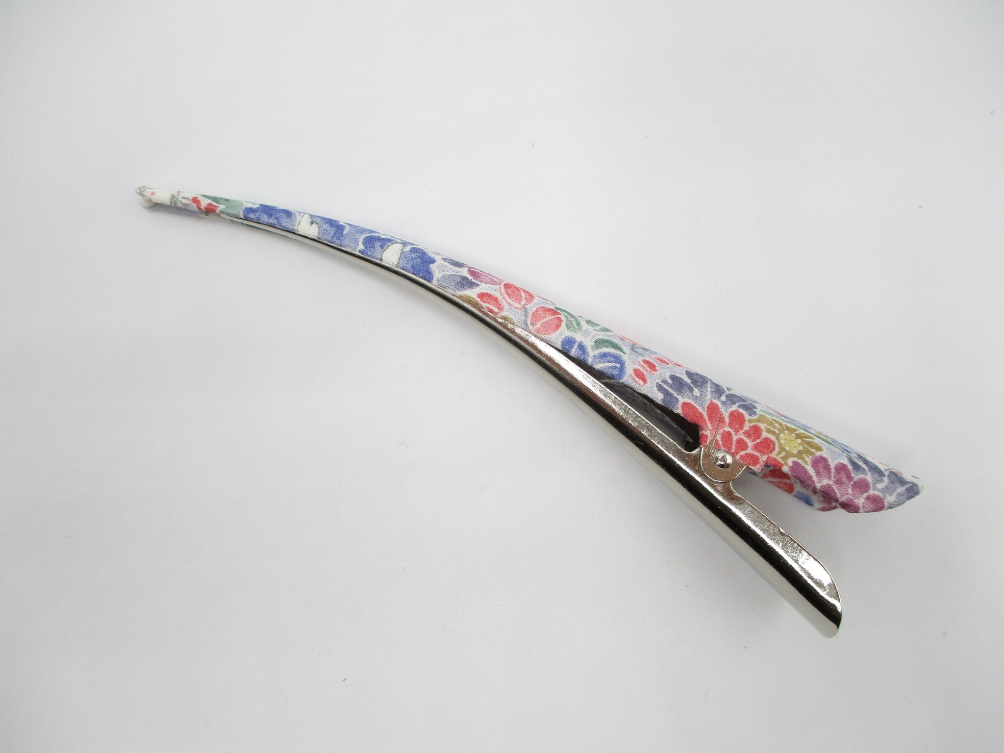 This is a Japanese Silk Kimono Big Hair Clip, Long Fabric Covered Kimono Clip.