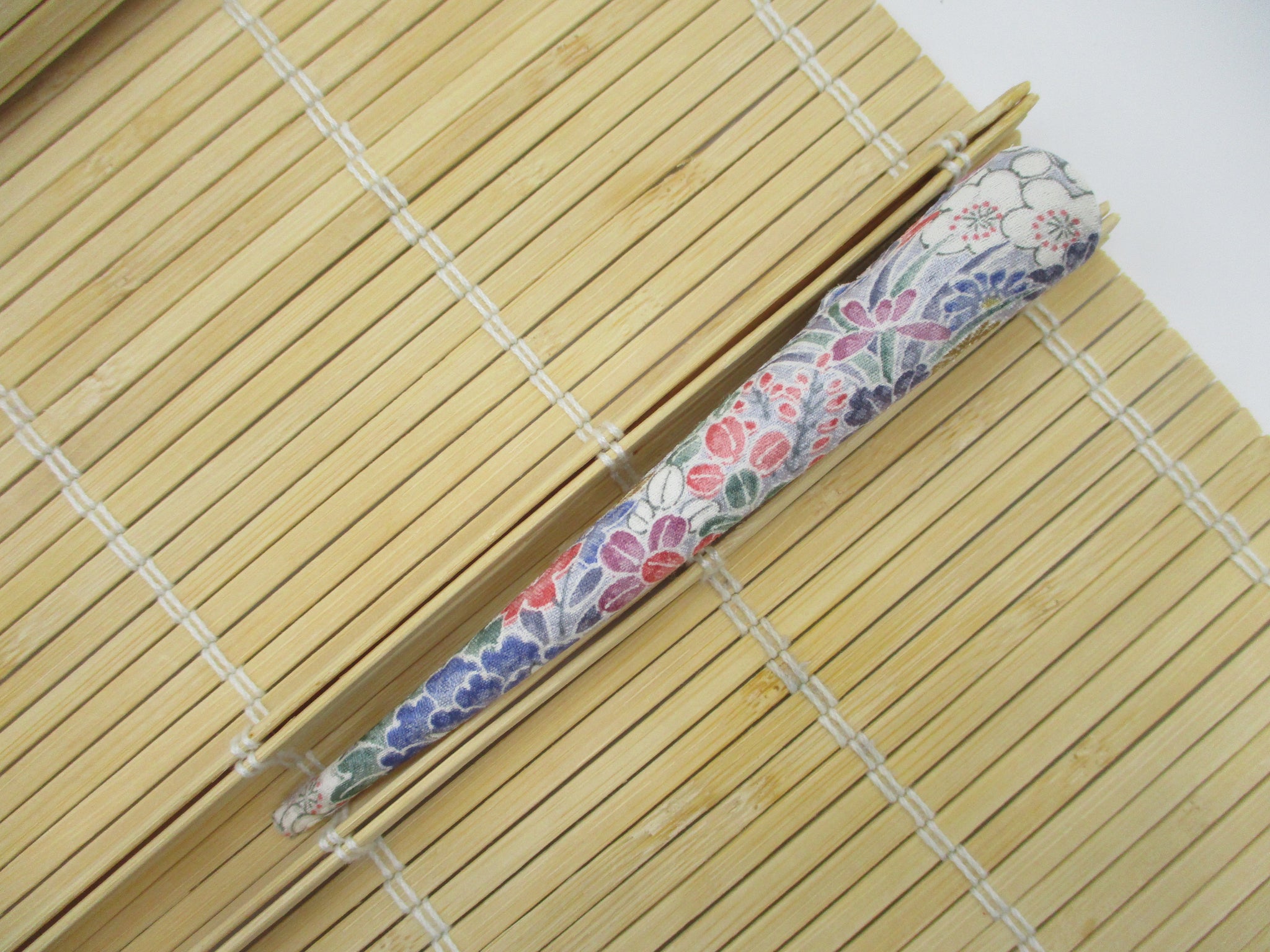 Vintage Silk Kimono Fabric is carefully applied to a sturdy metal clip.