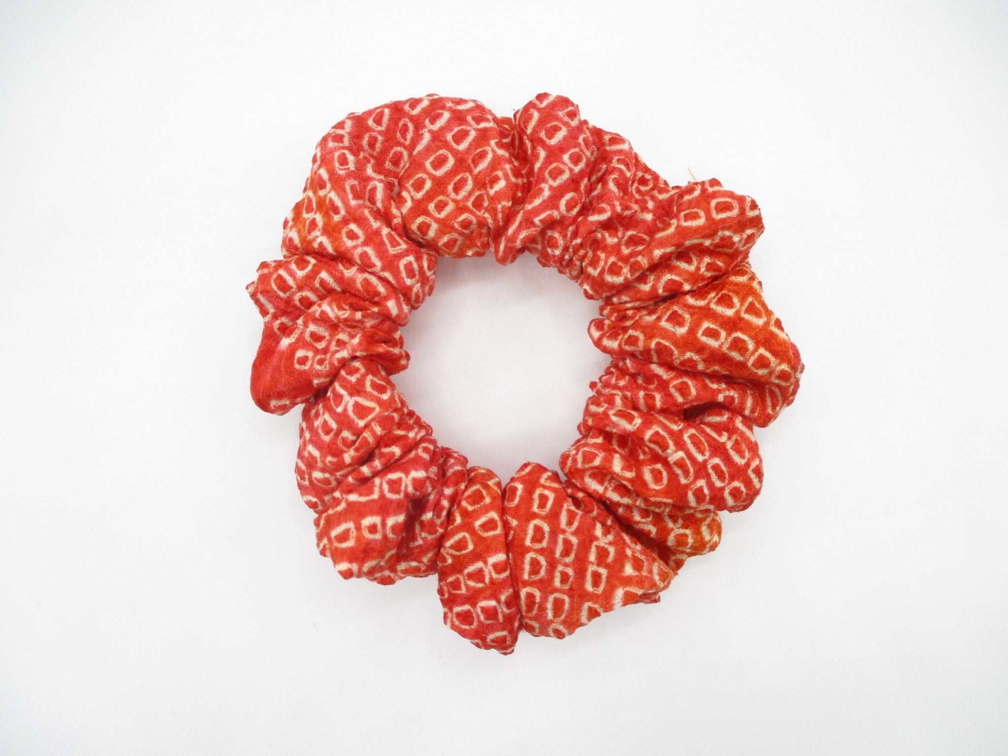 This is a Japanese Fabric Ponytail Holder, Silk Kimono Vintage Orange Shibori.