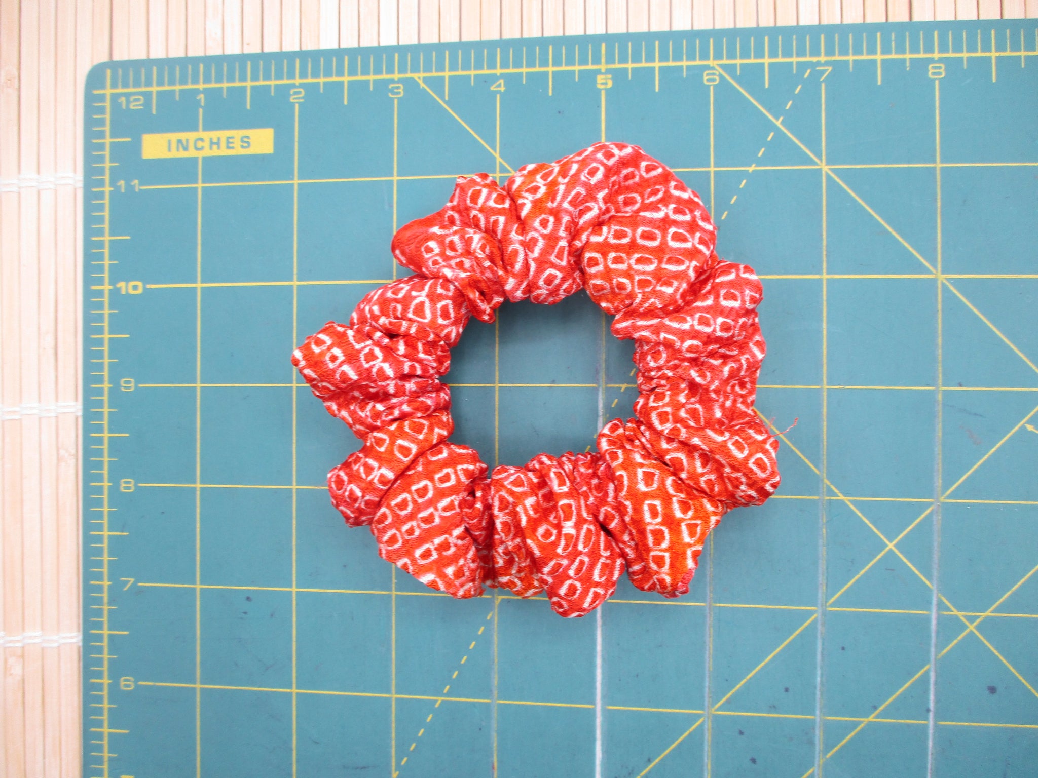 Materials: vintage, silk, kimono, fabric, Japanese, tie, thread, scrunchie.