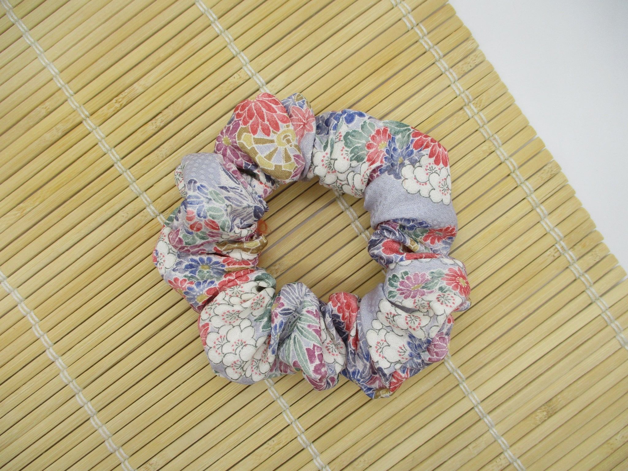 Materials: vintage, silk, kimono, fabric, Japanese, tie, thread, scrunchie.