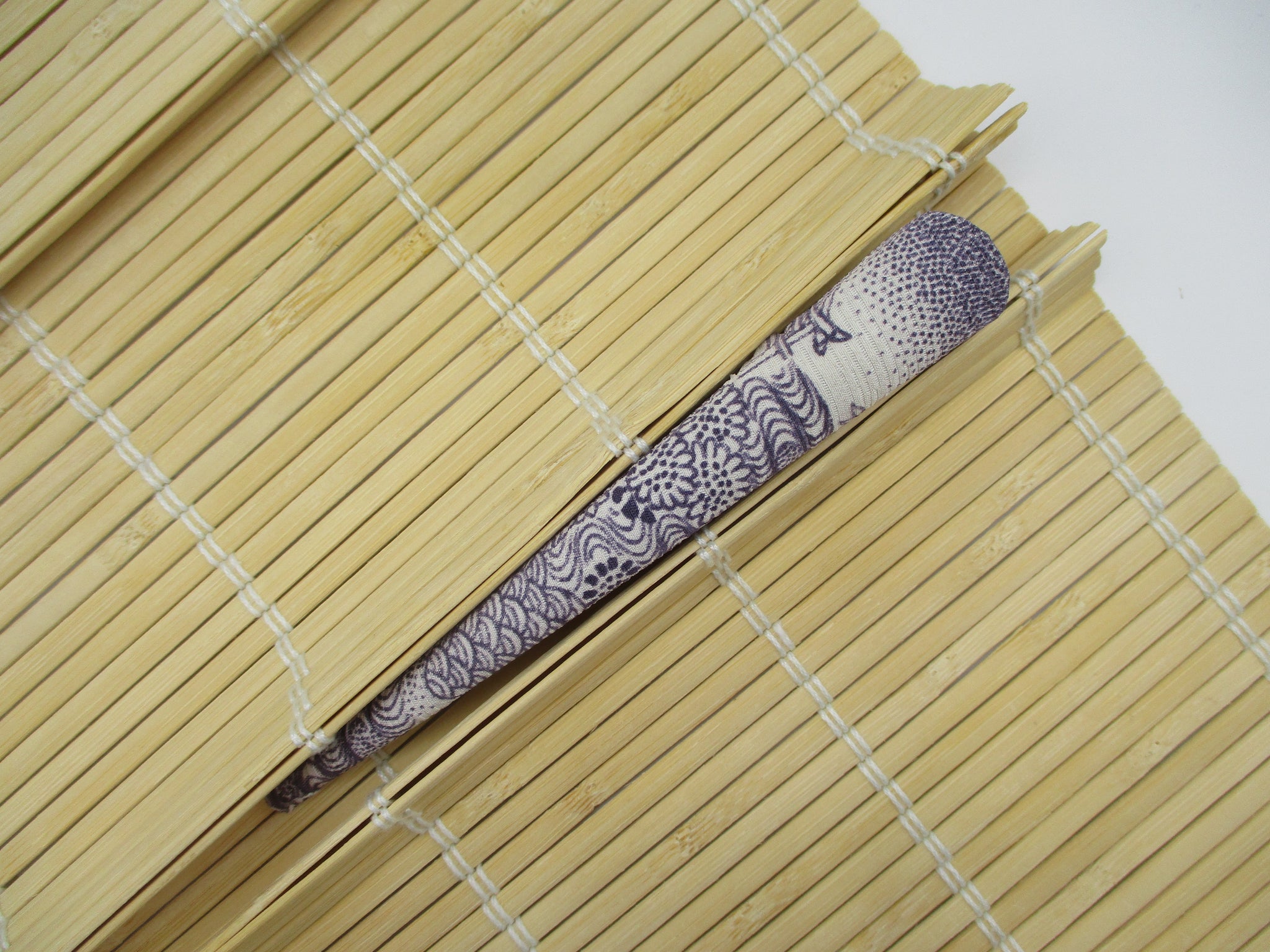 This is an Upcycled Vintage Silk Kimono Big Hair Clip, Purple 5 1/8 inch.