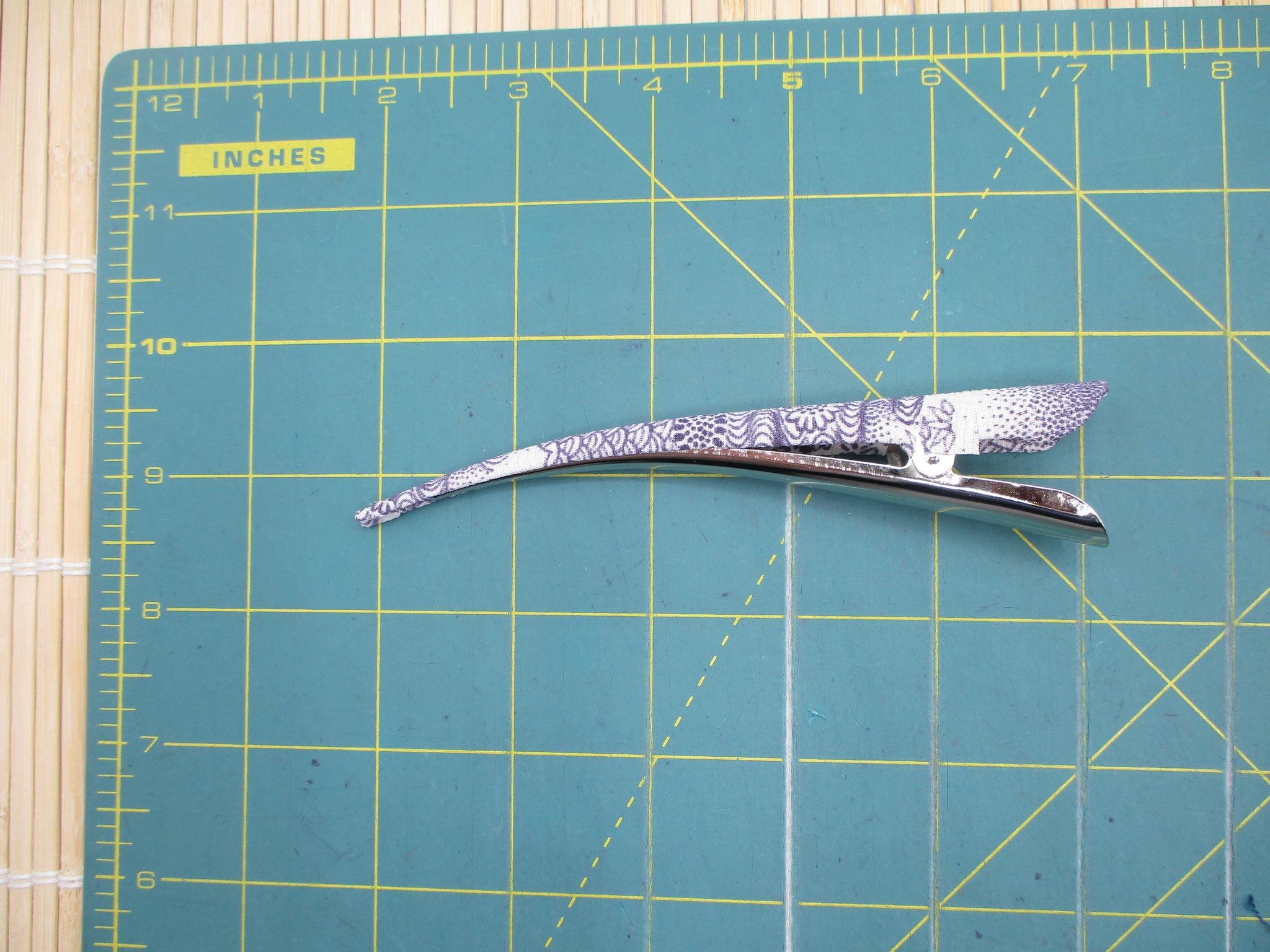 Vintage Silk Kimono Fabric is carefully applied to a sturdy metal clip.