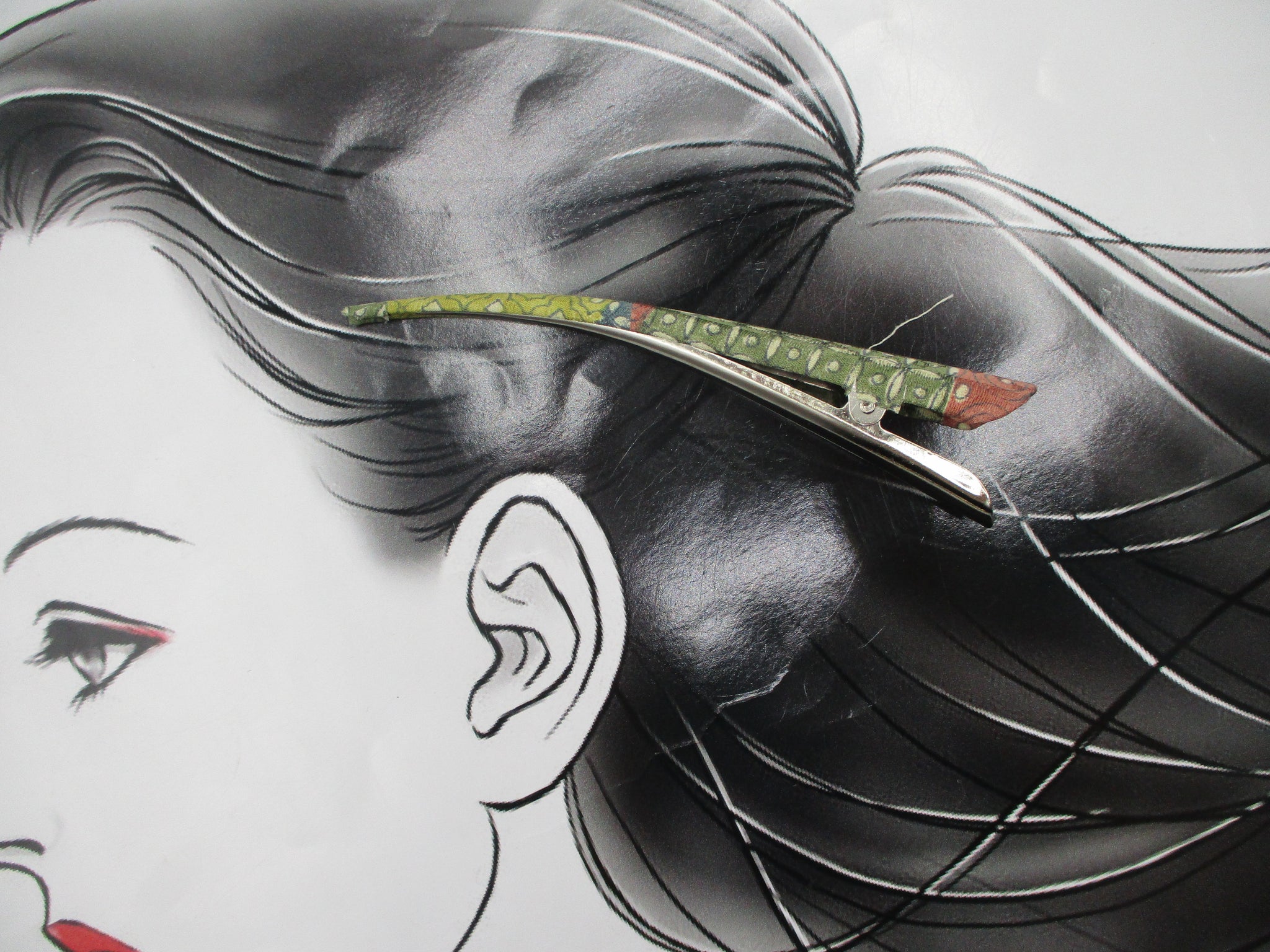 This is a Wabi Sabi Colorful Kimono Hair Clip, 130mm Metal Hair Clip Green 130mm.