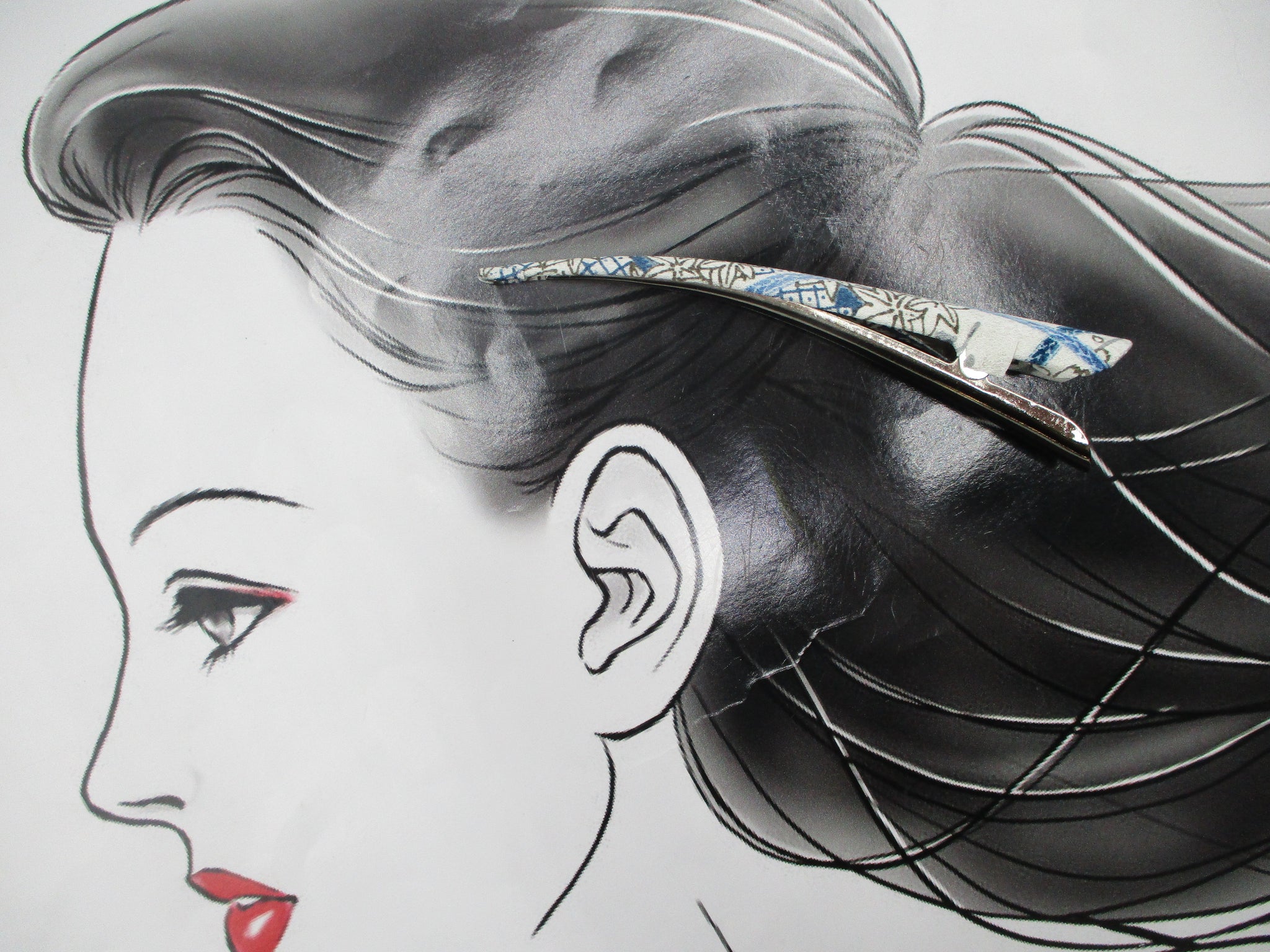 This is a Blue White Floral Japanese Silk Kimono Hair Clip Ship from USA.
