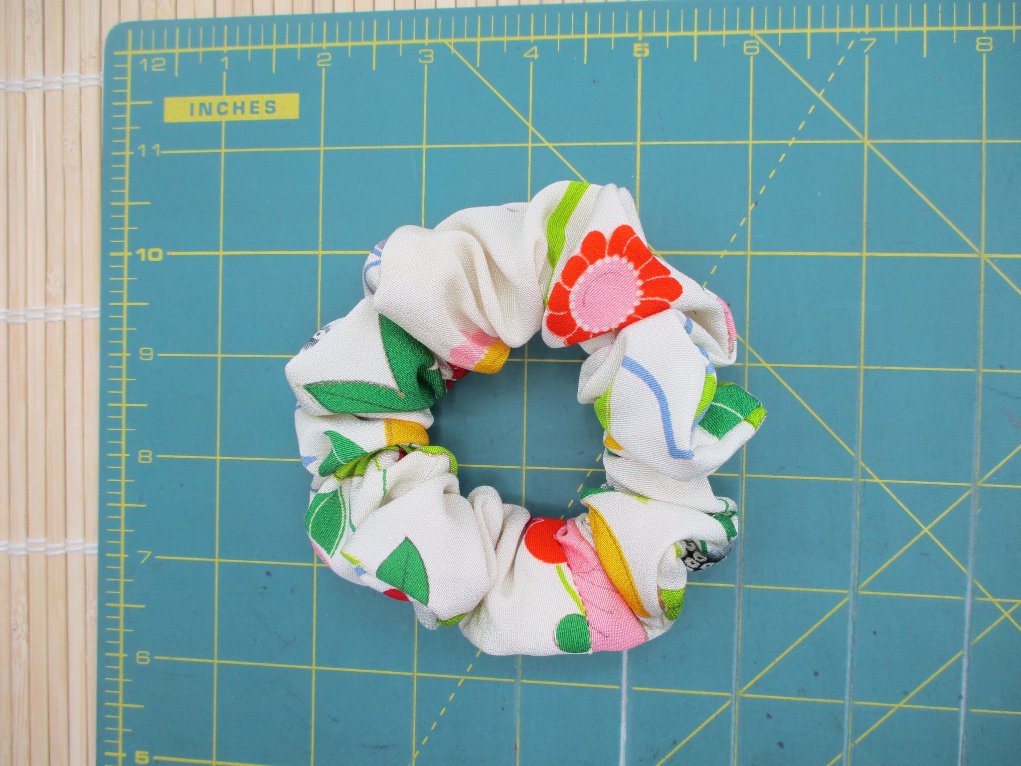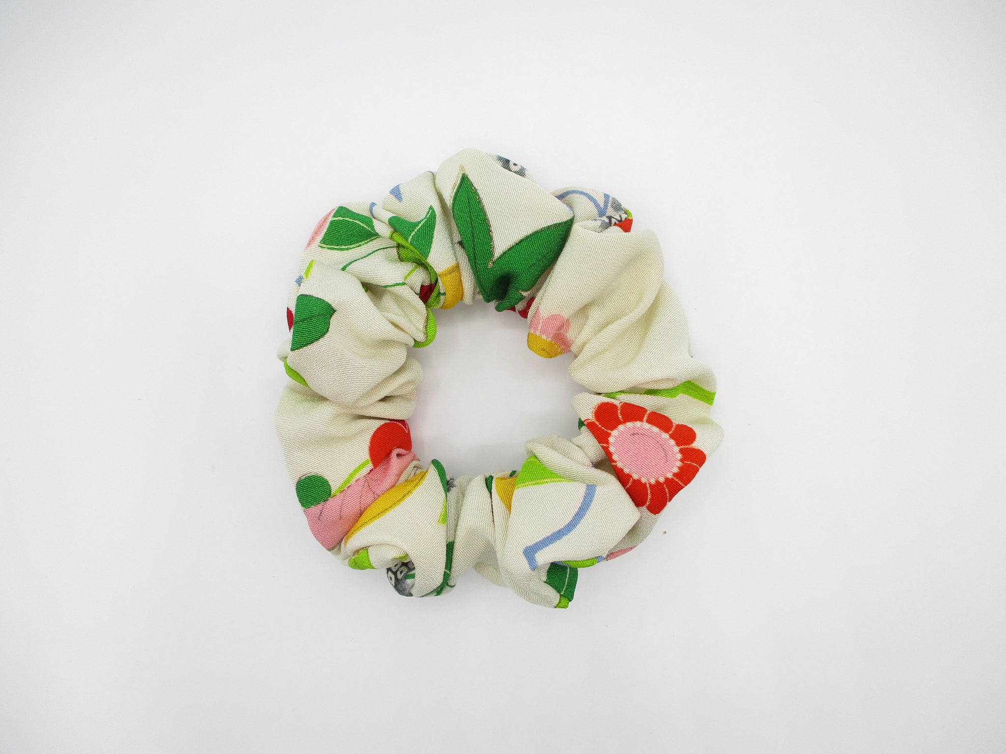 "These beautiful “ scrunches “ are made with silk kimono fabric and are a joy to receive, with strong elastic, they hold well and are so gentle on your hair."
