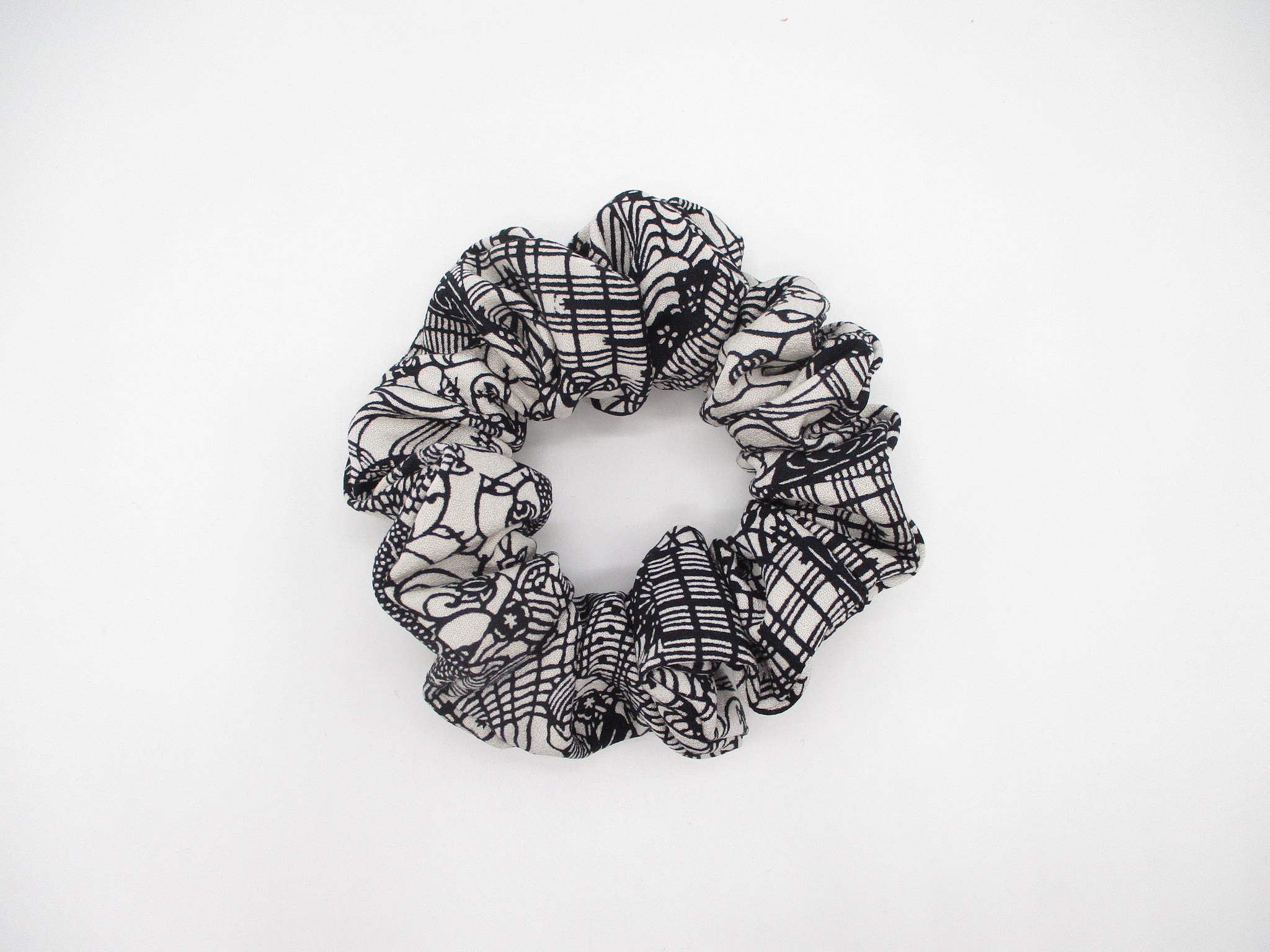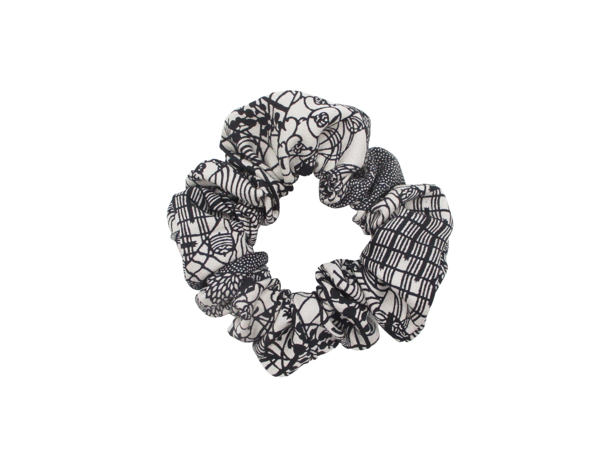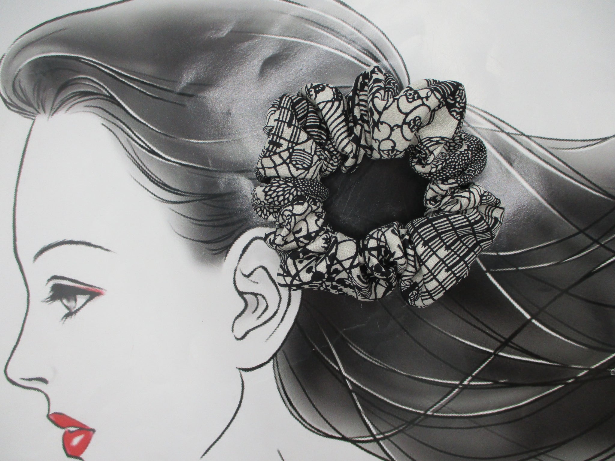 This is a Black Kiribame Silk Kimono Scrunchies, Japanese Fabric Hair Tie.